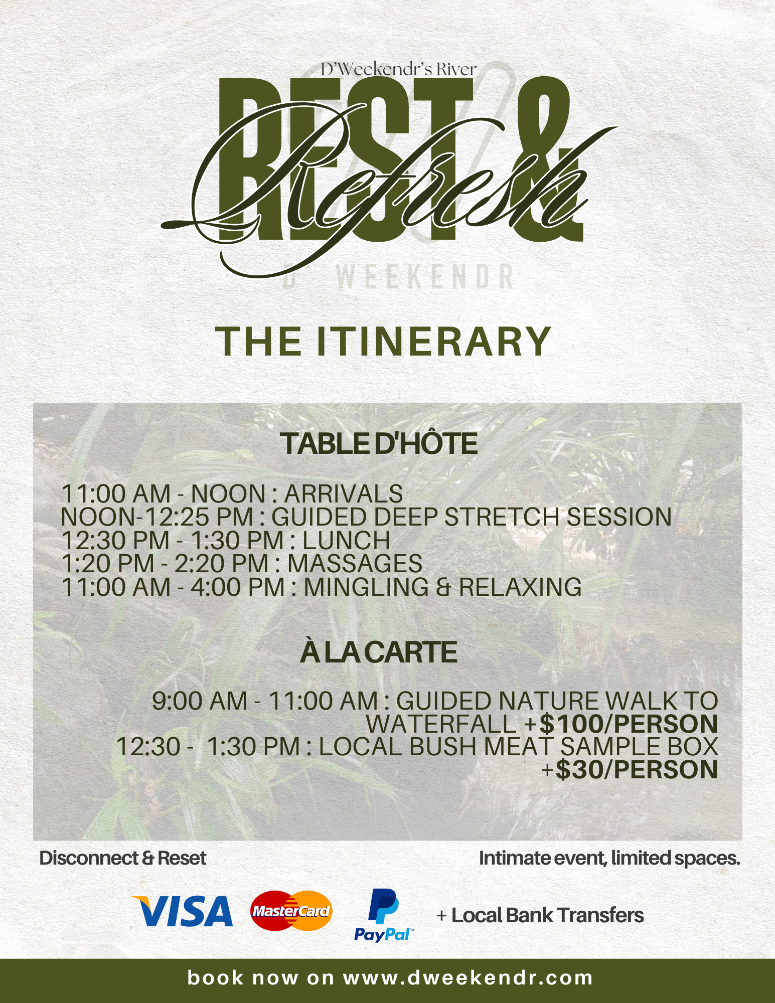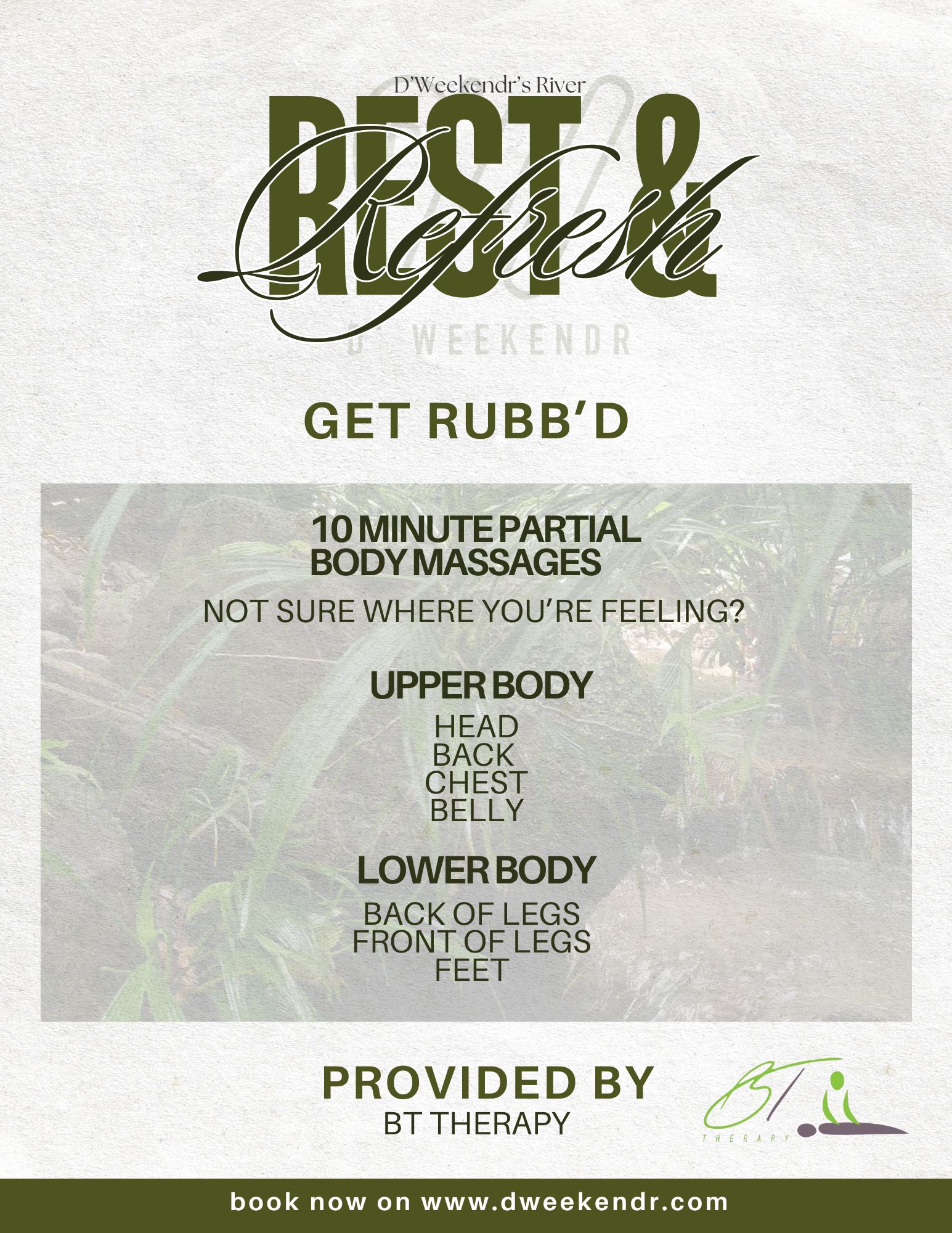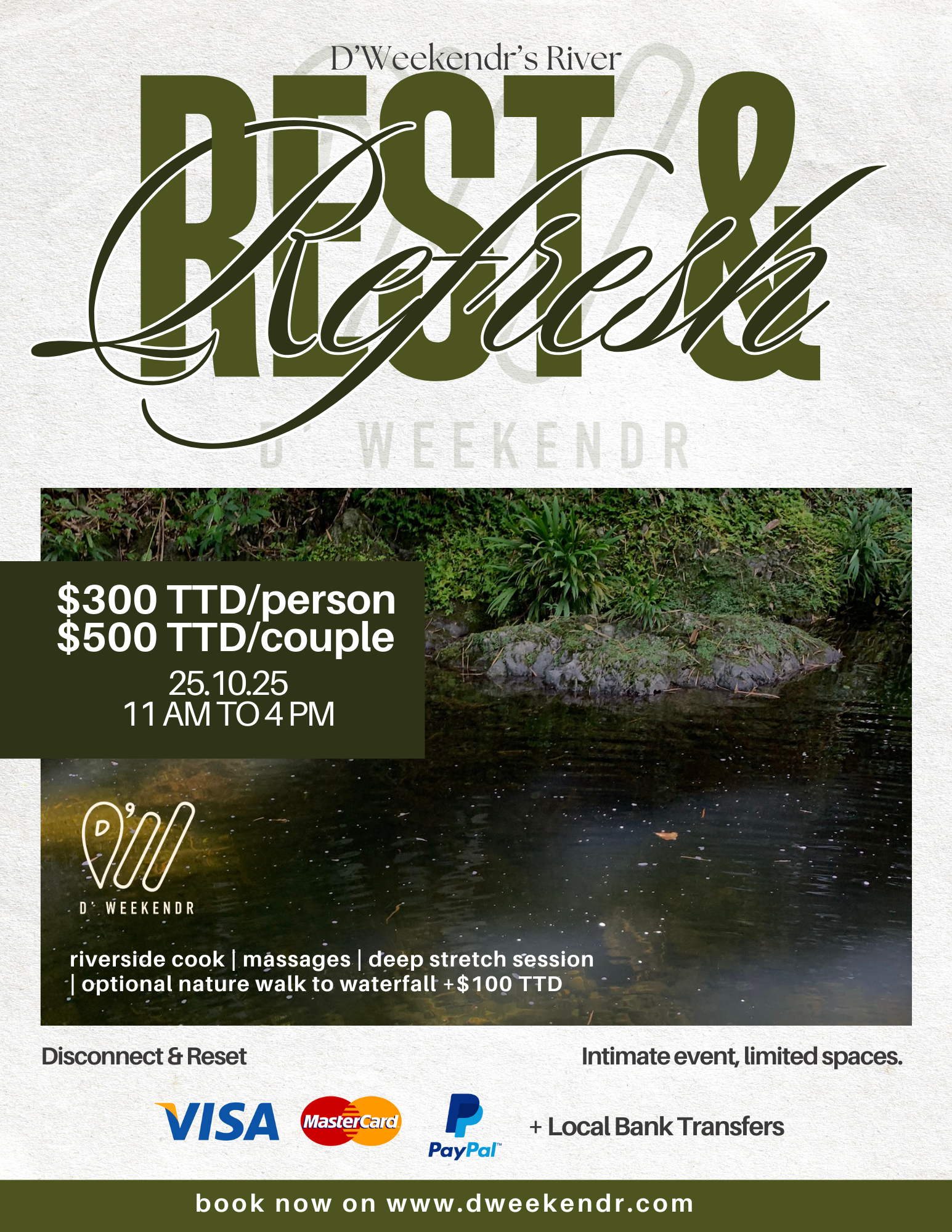 D’Weekendr’s Rest & Refresh by the river invites you to reset with massages, deep stretch, and riverside dining. An intimate space to mingle, recharge, or simply catch a quiet moment before the festivities continue. 🌿💆🏽♀️💫