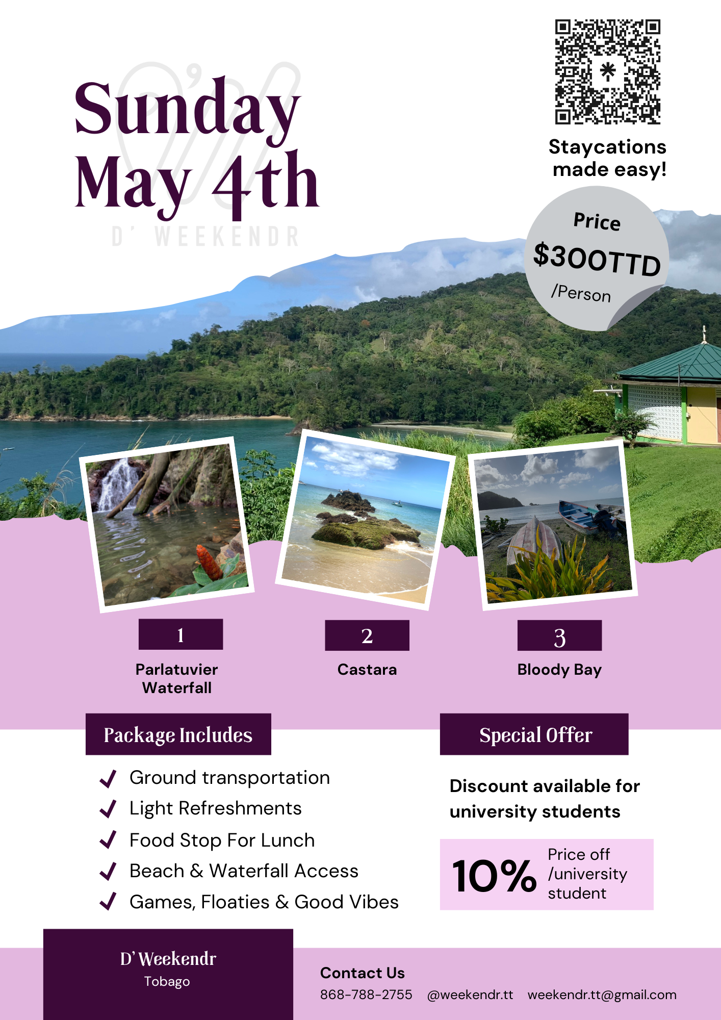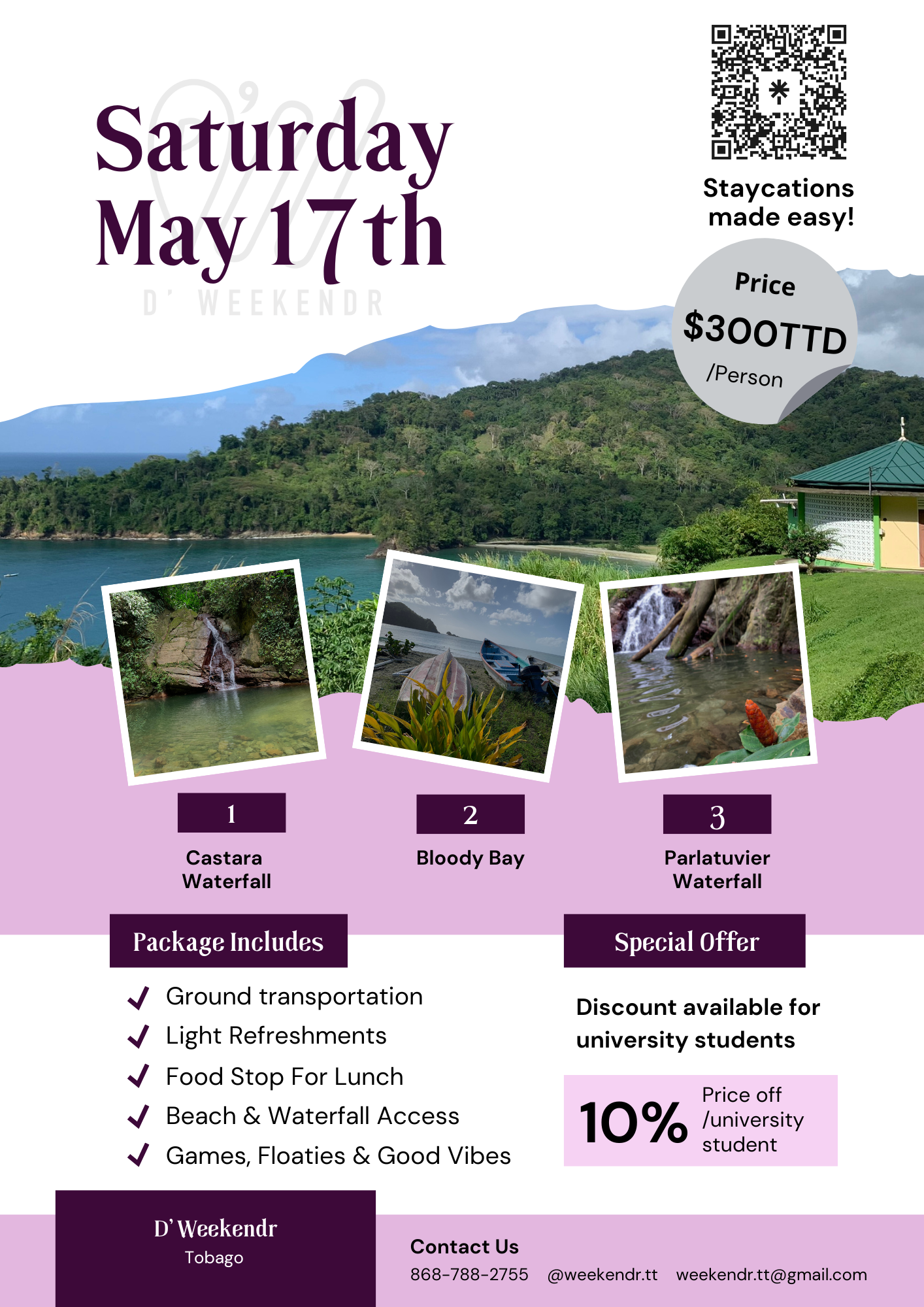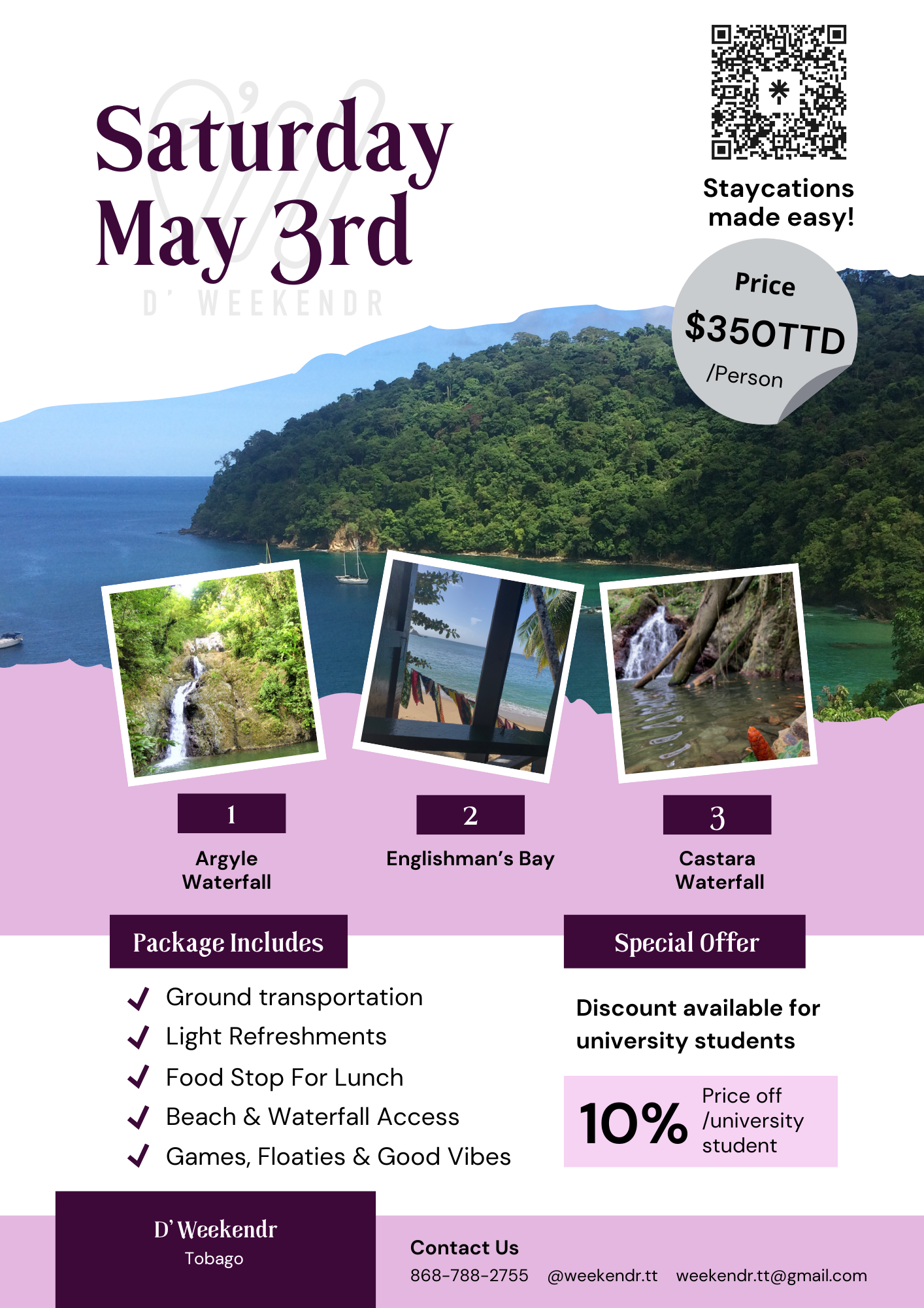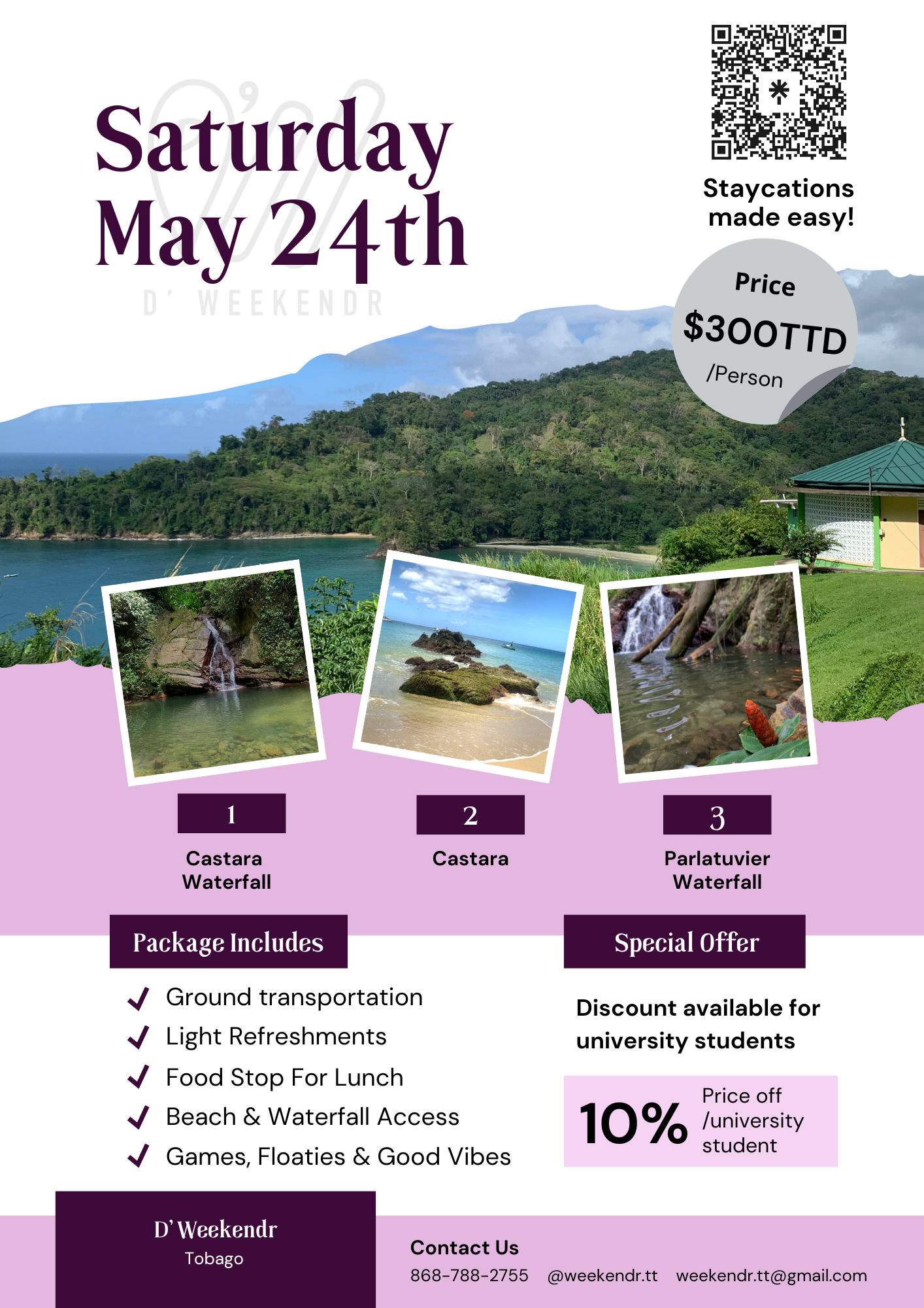Escape the hustle and bustle and discover the beauty of Tobago with our exciting weekend excursions! Whether you’re craving adventure, relaxation, or a good lime, we’ve got the perfect getaway for you. Sit back and enjoy the scenic ride along the way.