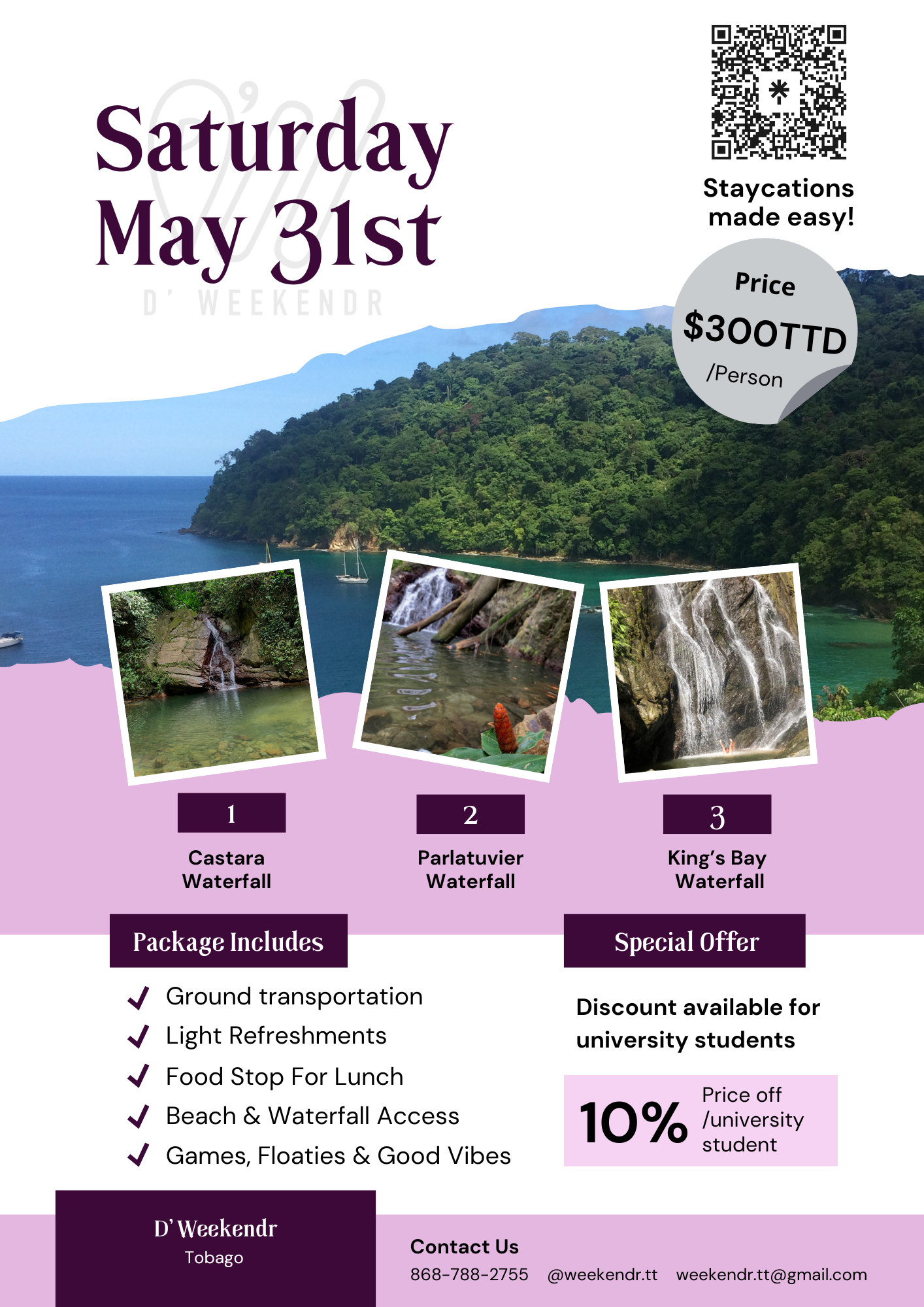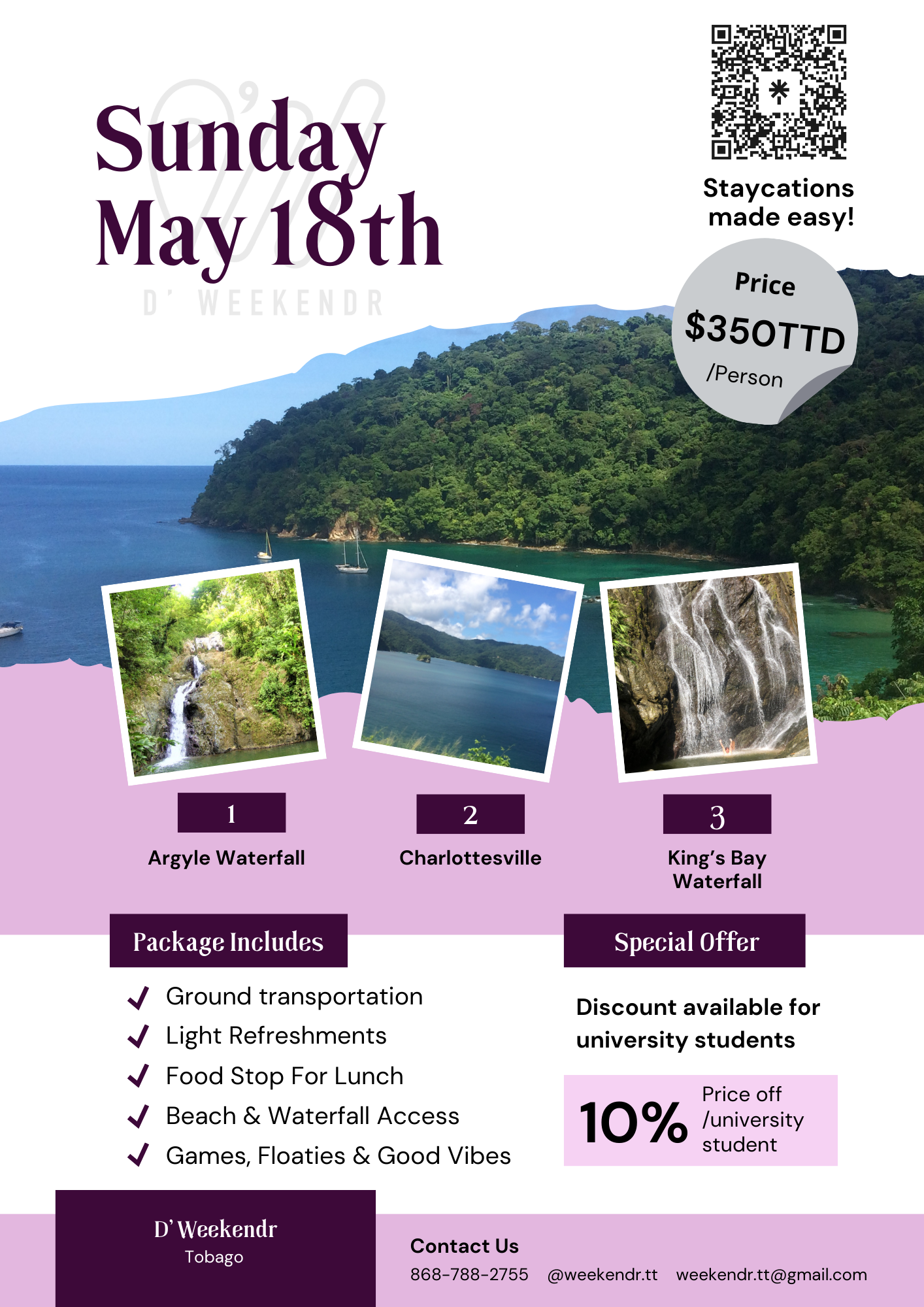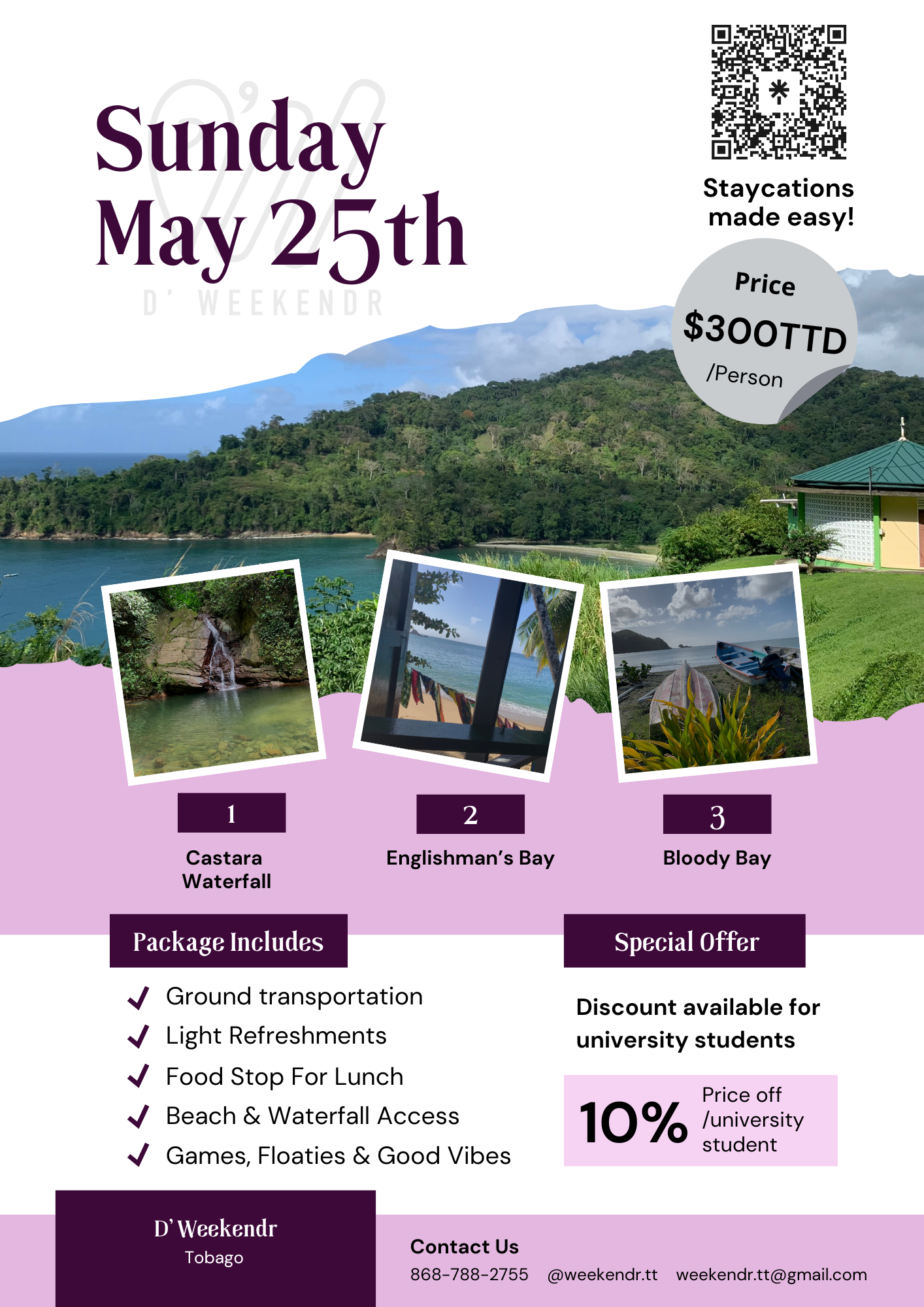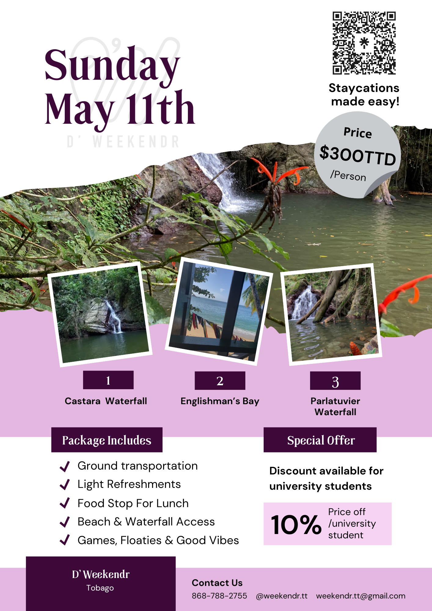 Escape the hustle and bustle and discover the beauty of Tobago with our exciting weekend excursions! Whether you’re craving adventure, relaxation, or a good lime, we’ve got the perfect getaway for you. Sit back and enjoy the scenic ride along the way.